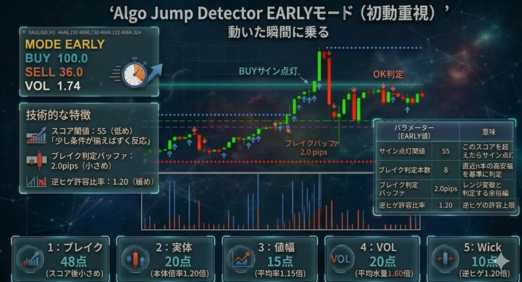 EARLYモード(初動重視)|動いた瞬間に乗る