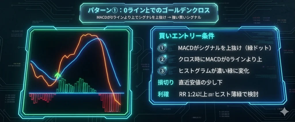 | 緑ドット | MACDがシグナルを上抜け(買いシグナル) |