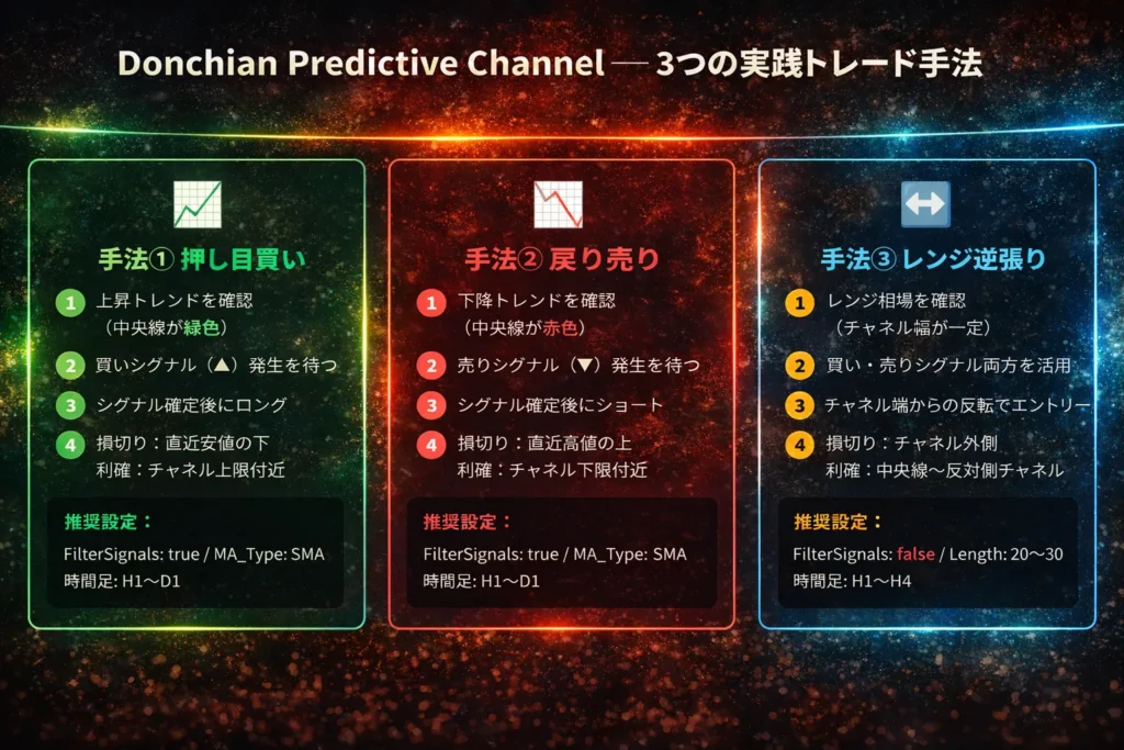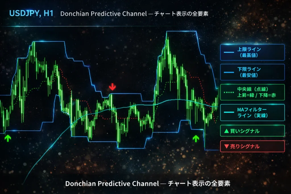 この記事では、Donchian Predictive Channelインジケーターの正確なシグナルロジックから、実践的なトレード手法まで詳しく解説します。