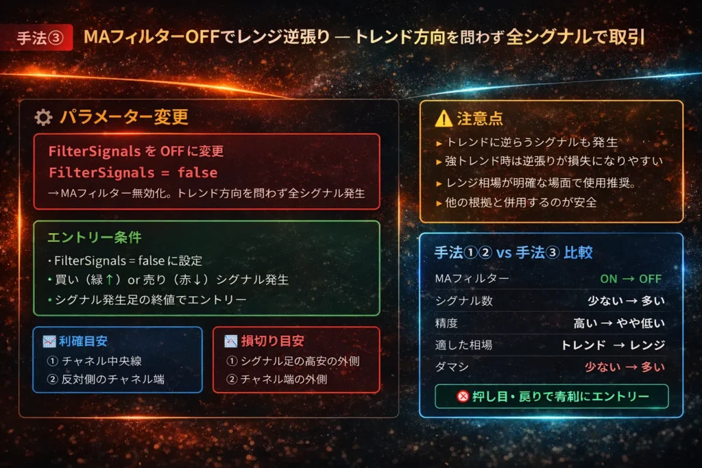 手法③:MAフィルターOFFでレンジ逆張り