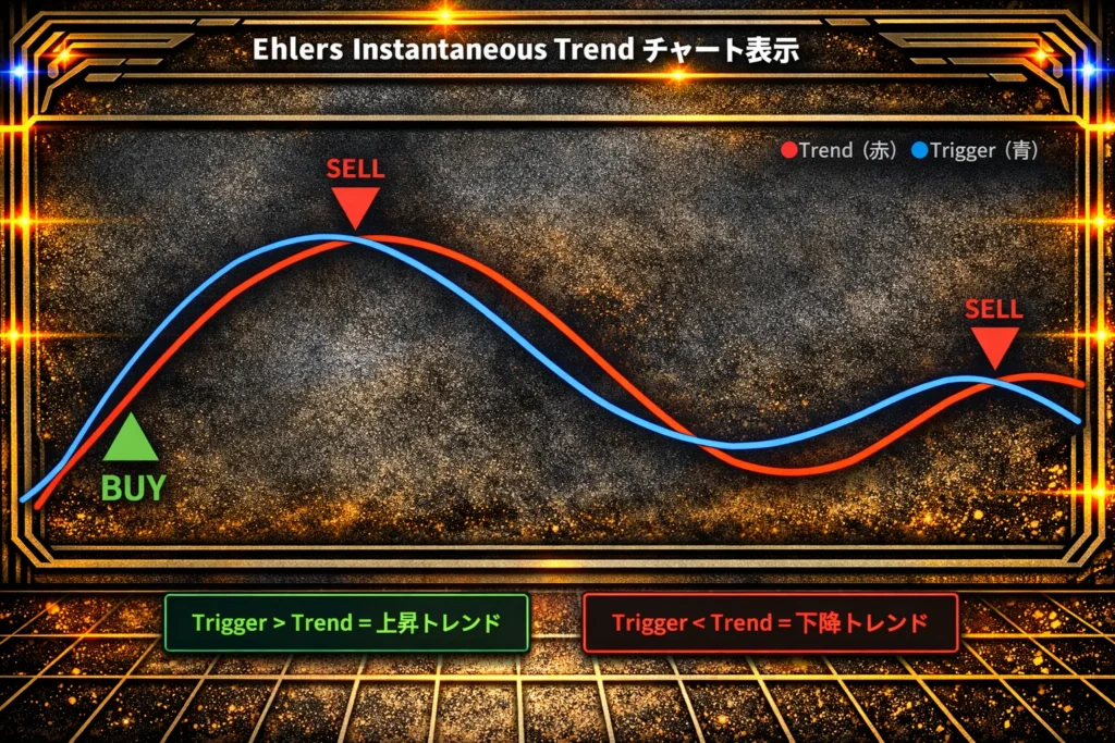 結論:トリガーラインは、Instantaneous Trendの線形外挿による予測ラインで、トレンドの加速・減速を先読みします。