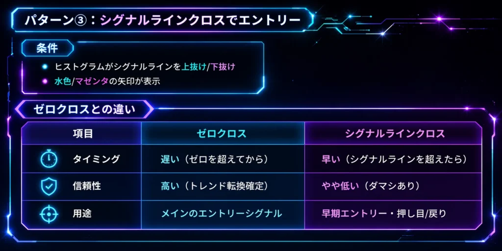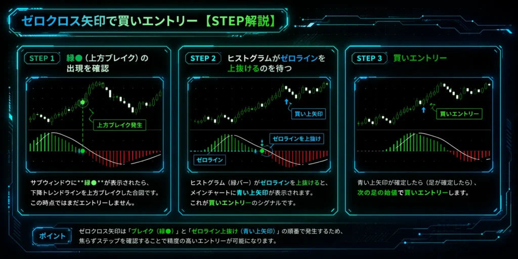 - ゼロクロス/シグナルクロス矢印で明確なエントリーポイント