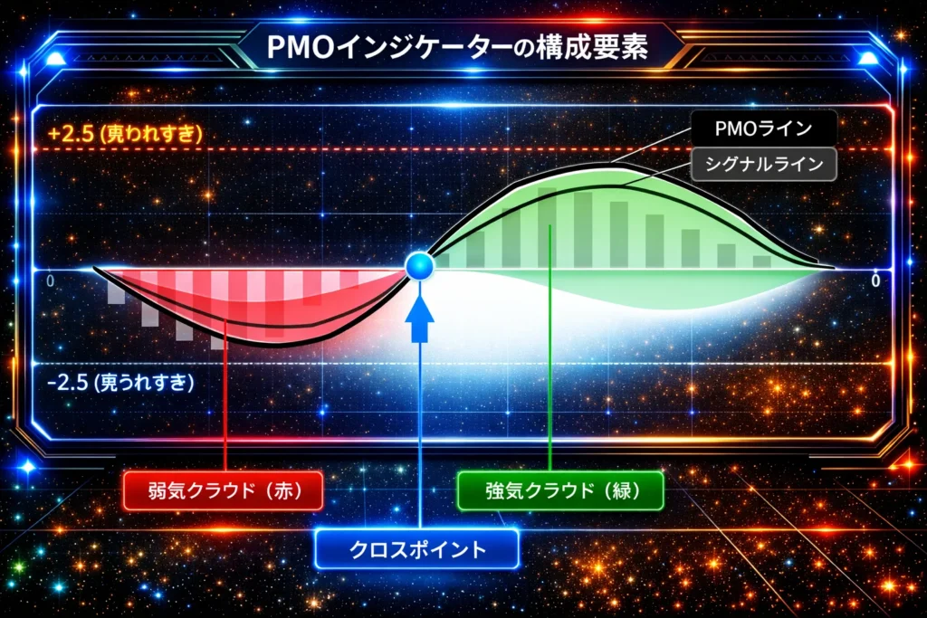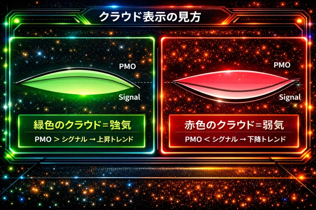 | クラウド表示 | PMOとシグナル間を塗りつぶし | トレンド方向が視覚的に一目瞭然 |
