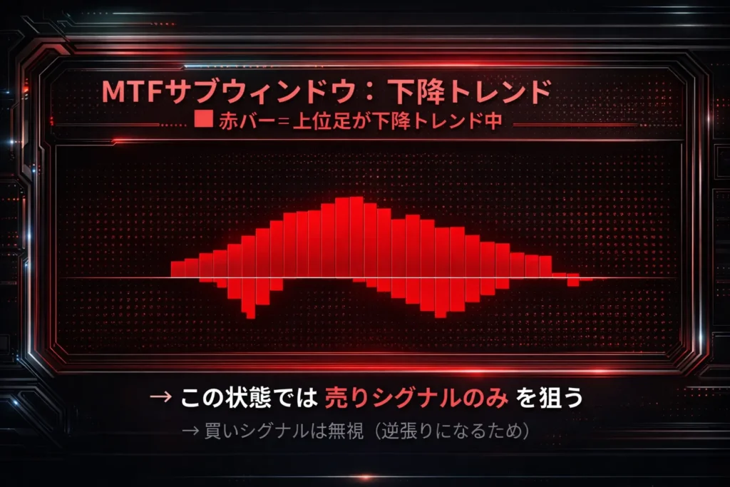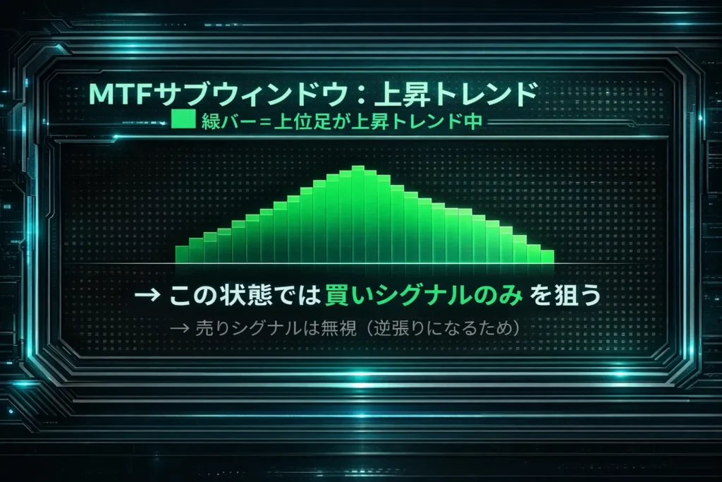 結論:サブウィンドウのバーは「上位足がトレンド中かどうか」を示します。