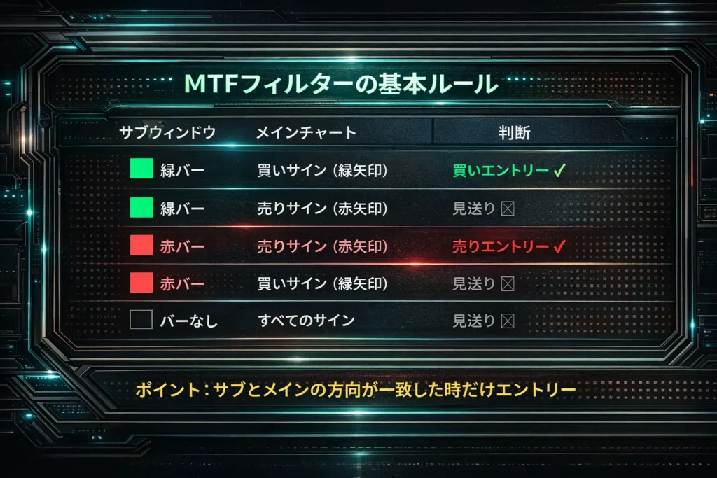特徴③:MTFフィルター搭載(サブウィンドウ)