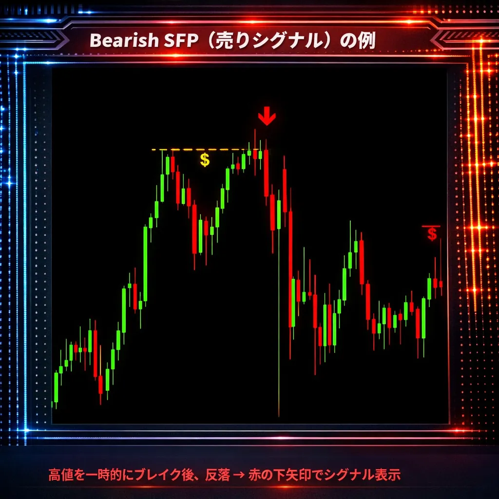 | Bearish SFP | 高値を一時的に超えた後、反落下降 | 売りシグナル |