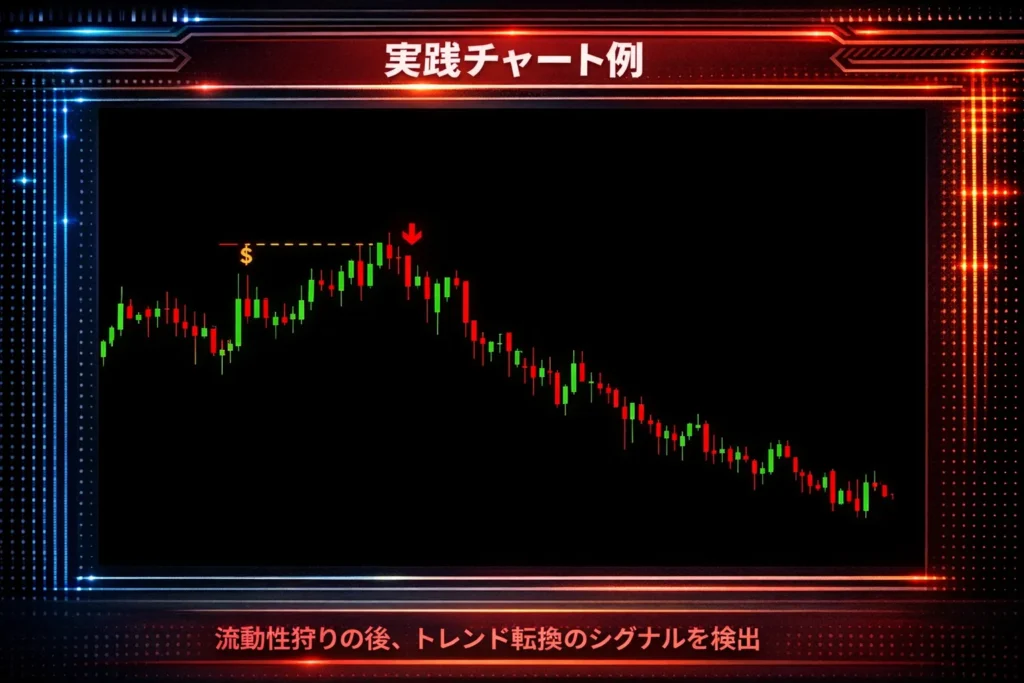 SMCでは「流動性狩り」と呼ばれ、大口トレーダーがストップロスを狩り取った後の反転ポイントとして注目されています。